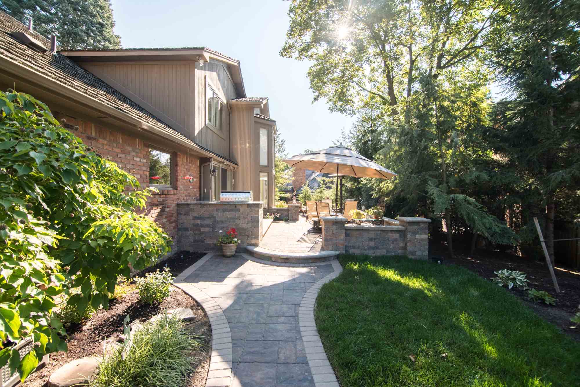Are you in search of a brick paver company in Birmingham Michigan? We take pride in patio design and installing outdoor living spaces, especially this backyard patio in Birmingham! We were contacted to create a durable and cozy backyard space, great for family dinners and lounging all night long. The homeowners wanted a built-in BBQ space with outdoor kitchen and counter space to give room for great meal preparation. The family also wanted nicely stacked retaining walls and backyard brick pillars for some private outdoor living, and a place to sit! This patio paving project in Michigan was a joy to design, and the brick pavers used were Unilock Beacon Hill in Flagstone. Completing this project is the gorgeous paver walkway that leads you to this comfortable outdoor living space. CONTACT US to get your patio brick paving design started.