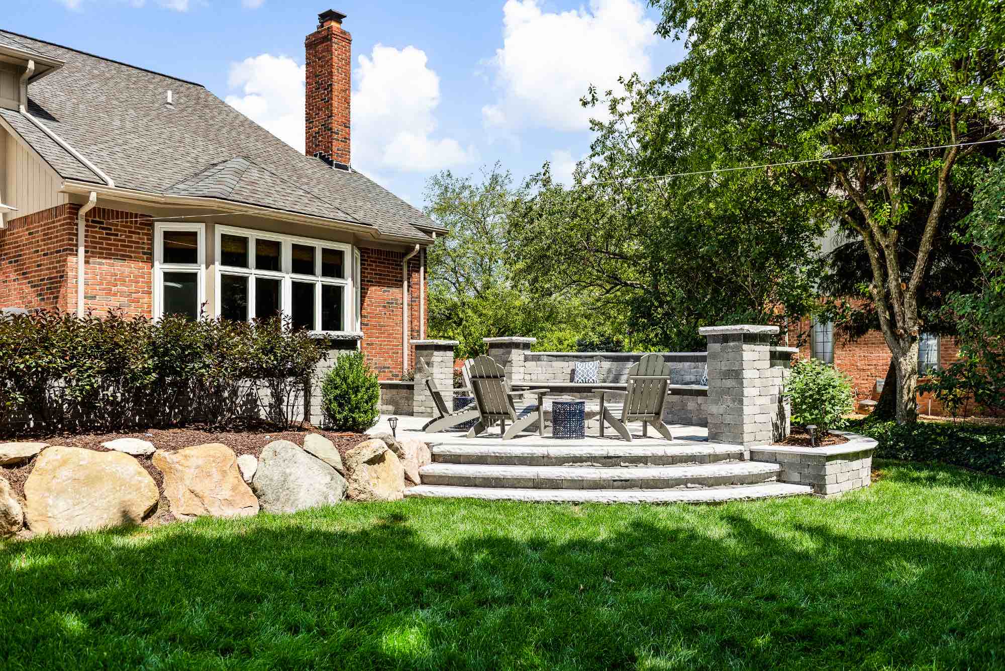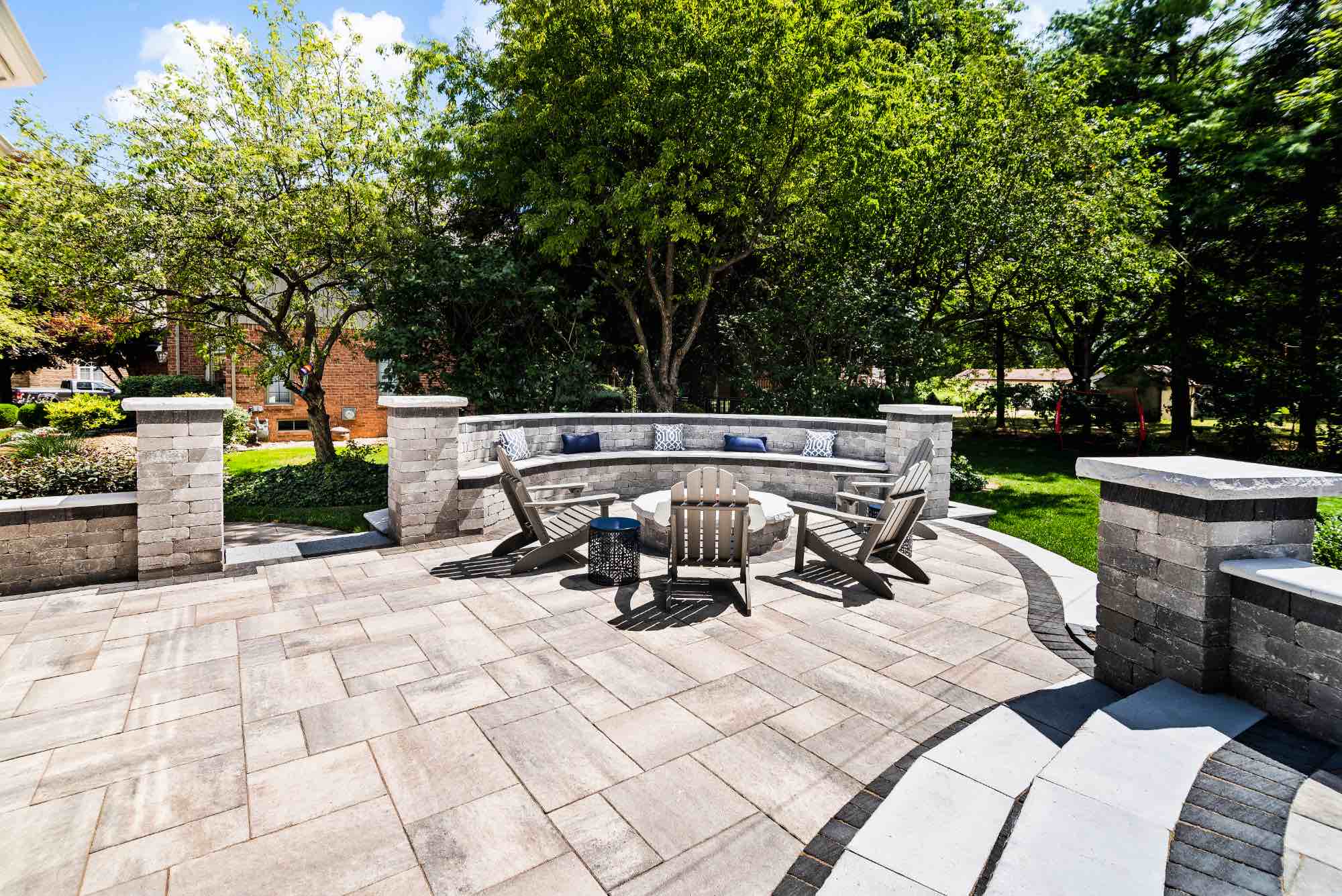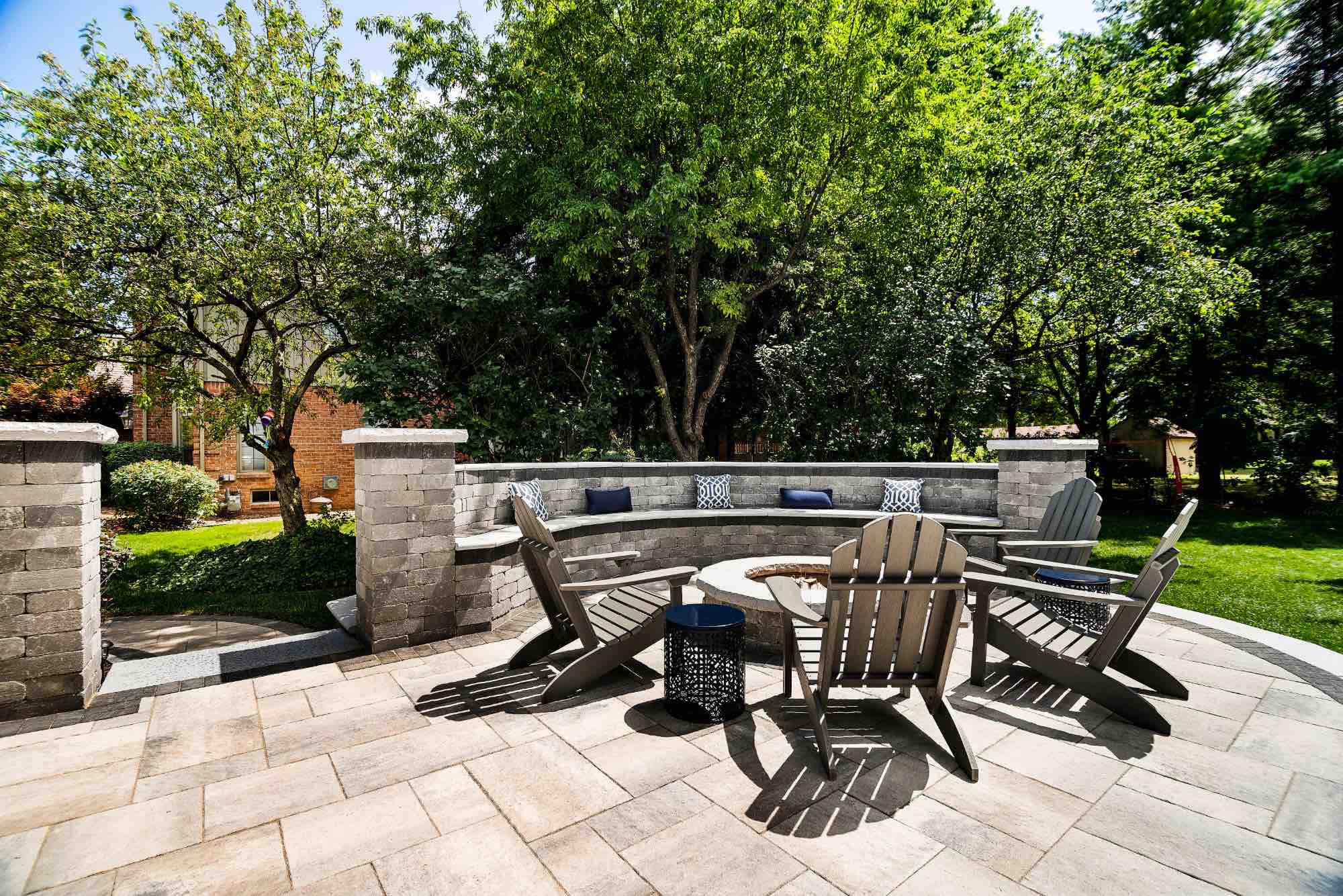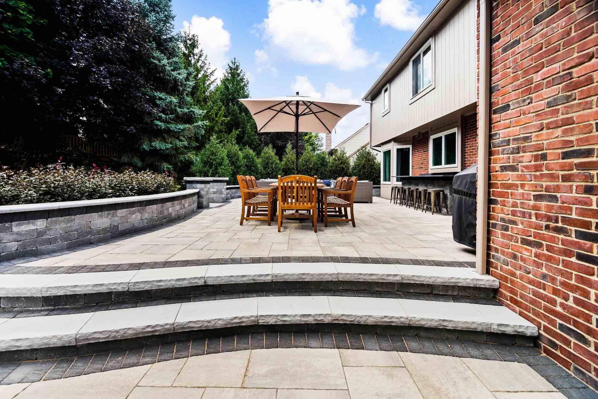 Entertaining family and friends can be amazing, as long as you have the perfect landscape design & fire pit install in Shelby Twp, Michigan. The team transformed this warm home into a modern, yet comfortable outdoor living space. The idea for this landscape design was to work with various elevations throughout the patio and property, allowing for natural landscaping and providing privacy along the home. This custom hardscape in Shelby Michigan includes various features, such as a backyard granite bar countertop, a custom fire pit with paver seat walls, and a brick paver doorway. This design features Unilock Bristol Valley in Bavarian with Unilock LL Campo in Dark Charcoal for the borders and accents. The landscape design is complete with Michigan fieldstone boulders, accenting the warm house colors. Your gathering space is one call way, CONTACT US!