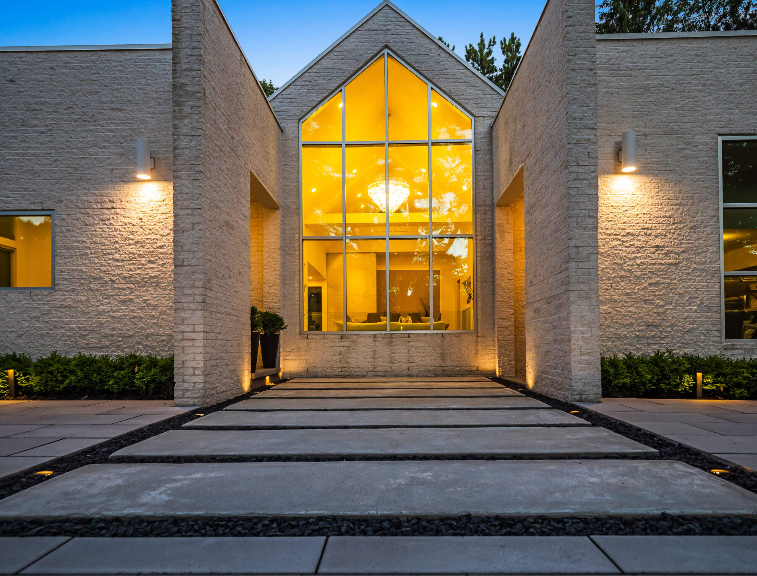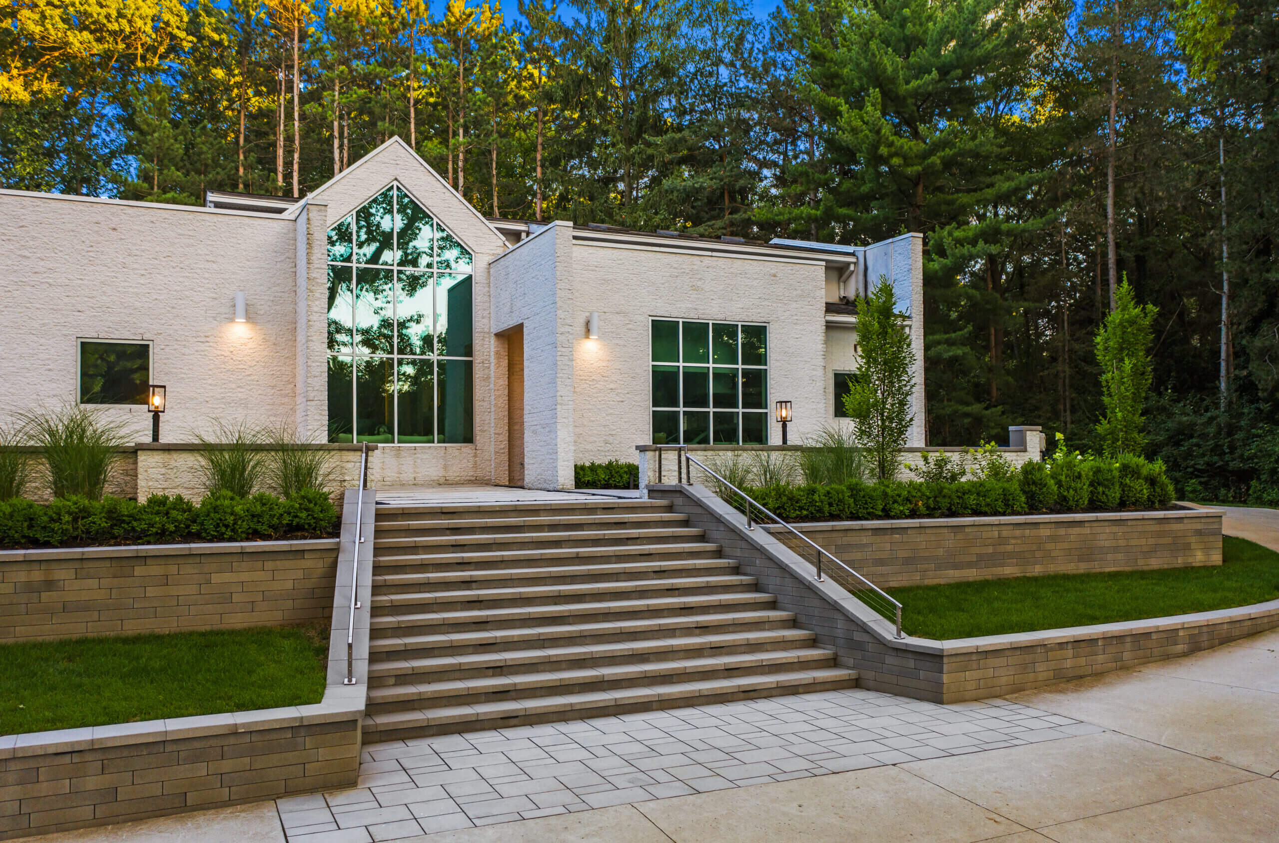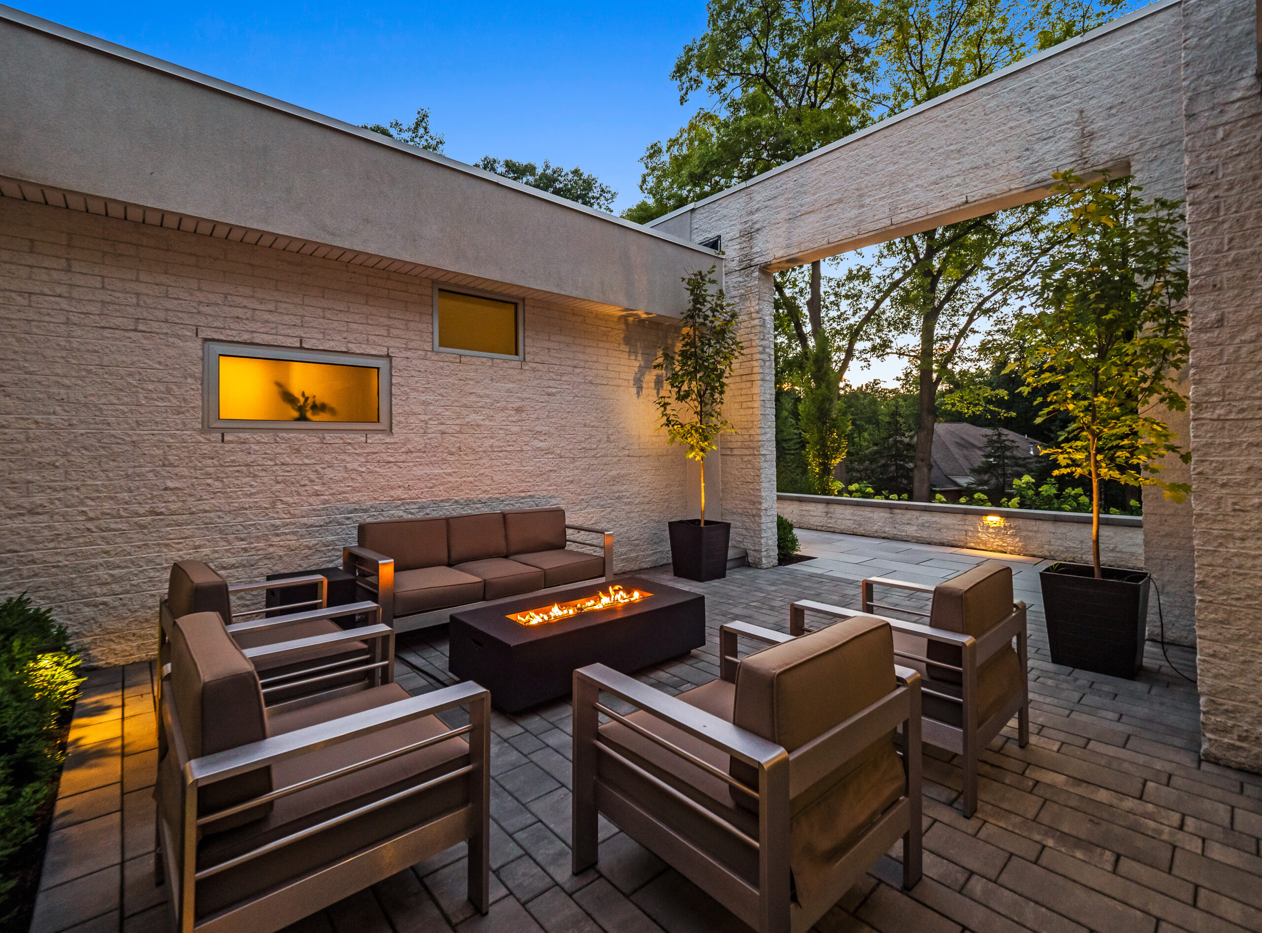Are you looking for custom patio paving in Franklin, Michigan? The White House Project may not be officially presidential, but certainly requires a refined landscape design to complement the contemporary and minimalist architecture. Nestled in Franklin Michigan, Antonelli Landscape tackled this paving project with Unilock Beacon Hill™ XL Slabs, Unilock Artline™ Pavers, and other pavers that kept the spotlight on this house, while keeping patio spaces intimate and minimal. Building on the steep front slope would prove to be challenging, but the use of terracing effectively leveled the work space and allowed for garden design to flourish. A wide tapered stairway is scaled to create an extension of the home's unique entrance, while landscape lighting provides a warm glow among the hardscape paving. If you have a project idea that is just as satisfying, reach out to US!