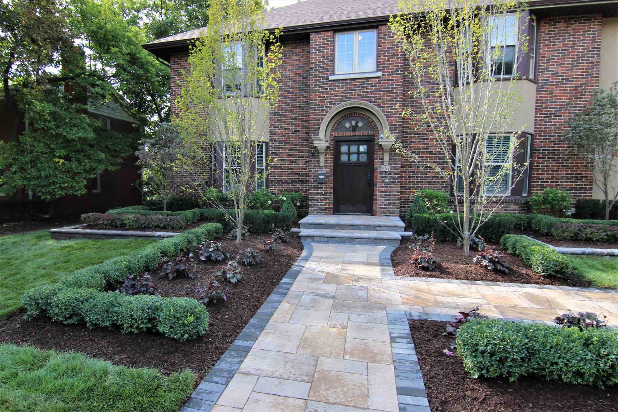 front yard design, landscape design, garden design, patio pavers, front yard ideas, house goals, landscape architecture, garden design, outdoor lighting, landscape lighting, low voltage landscape lighting, yard lights, pathway lighting, pavers, patio pavers, pavers near me, boxwood hedges, mulching near me, retaining walls