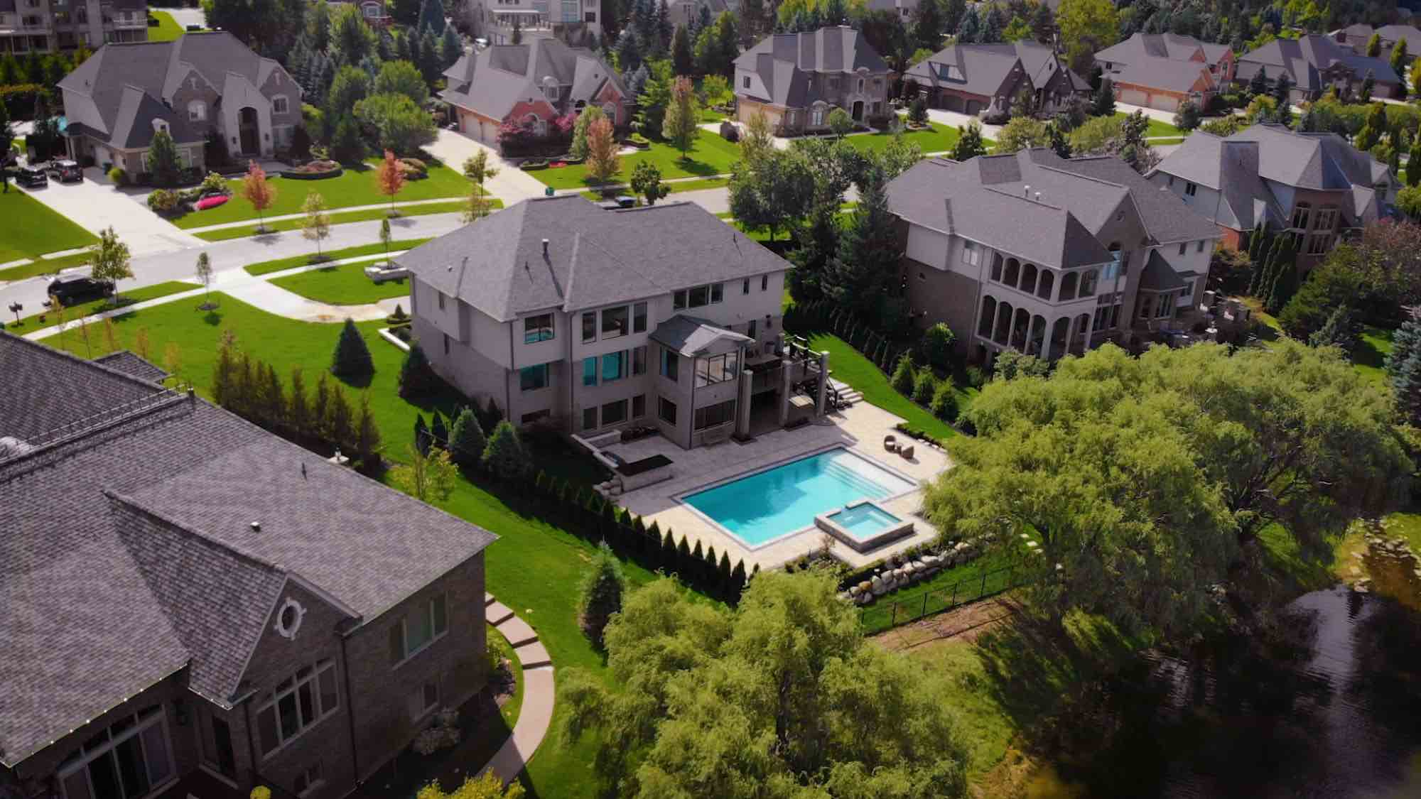 This custom inground pool with spillover spa is situated in Carrollton Hills of Oakland Twp, a design Antonelli could not wait to get their hands on! The luxurious home deserved nothing but the most elegant and beautiful outdoor living. This project features a stunning pool design with white marmite finish, a spillover spa cultured with stone veneer, and a outdoor grill and bar perfect for an enjoyable day in the backyard. The landscape design was also completed with low maintenance front yard landscaping, Oaks Rialto pavers and stepping stones for a down-to-earth feel, and even a Michigan boulder retaining wall to piece it all together. Are you ready to piece together your estate? Schedule a CALL now!