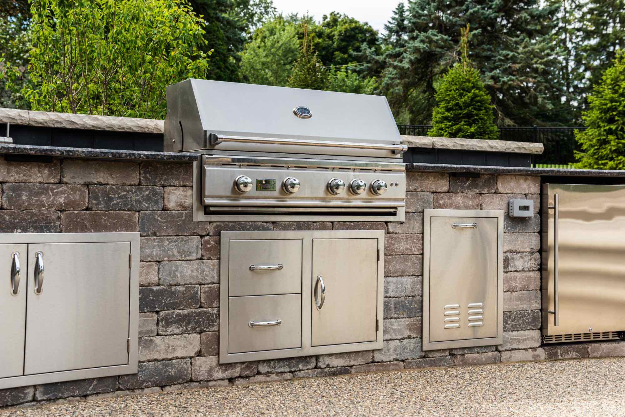 The Antonelli team had a blast with this landscape design in Troy Michigan. This project features a custom gunite inground pool, complete with a built-in tanning ledge and automatic pool cover. The landscape design also features a custom backyard athletic court with sports surfacing, giving you the perfect space for game time. We also built a custom cedar gazebo, a backyard BBQ grill perfect for hosting using Unilock Brussels Dimensional Wall Systems, and a custom gas fire table. Patio stones line the driveway and front yard, giving you wonderful curve appeal. Finally, a natural limestone slab retaining wall and privacy berm was built, to give you all the privacy while you enjoy in comfort. Schedule your CALL, and build the space of your dreams!