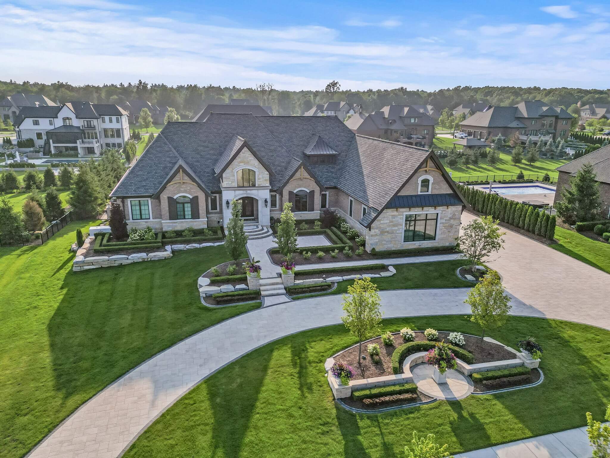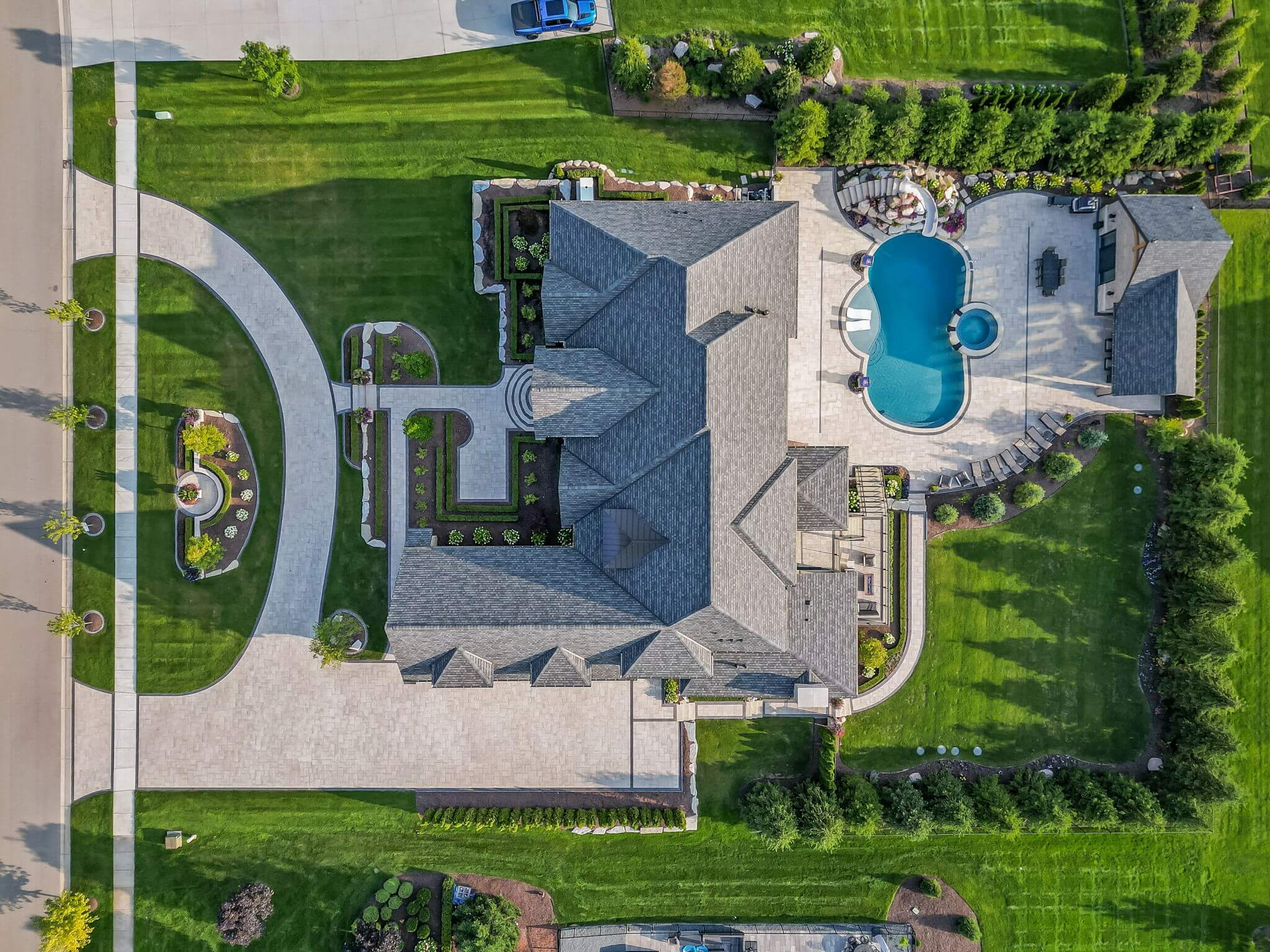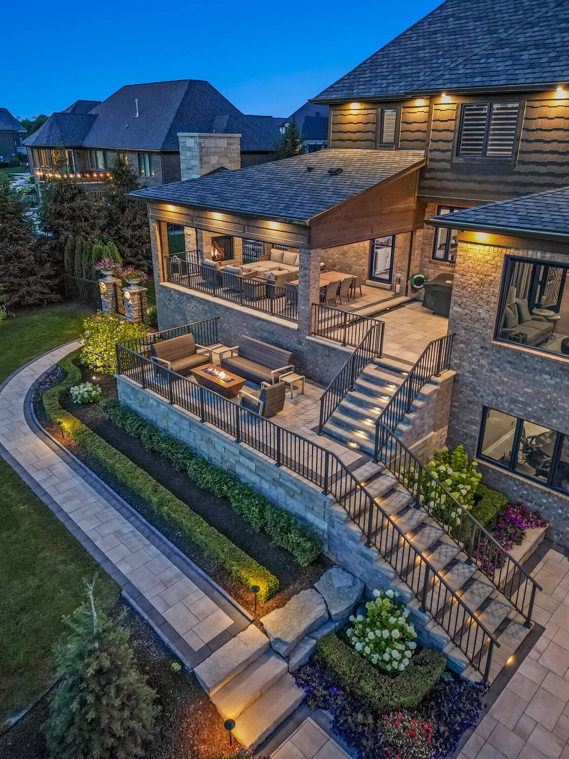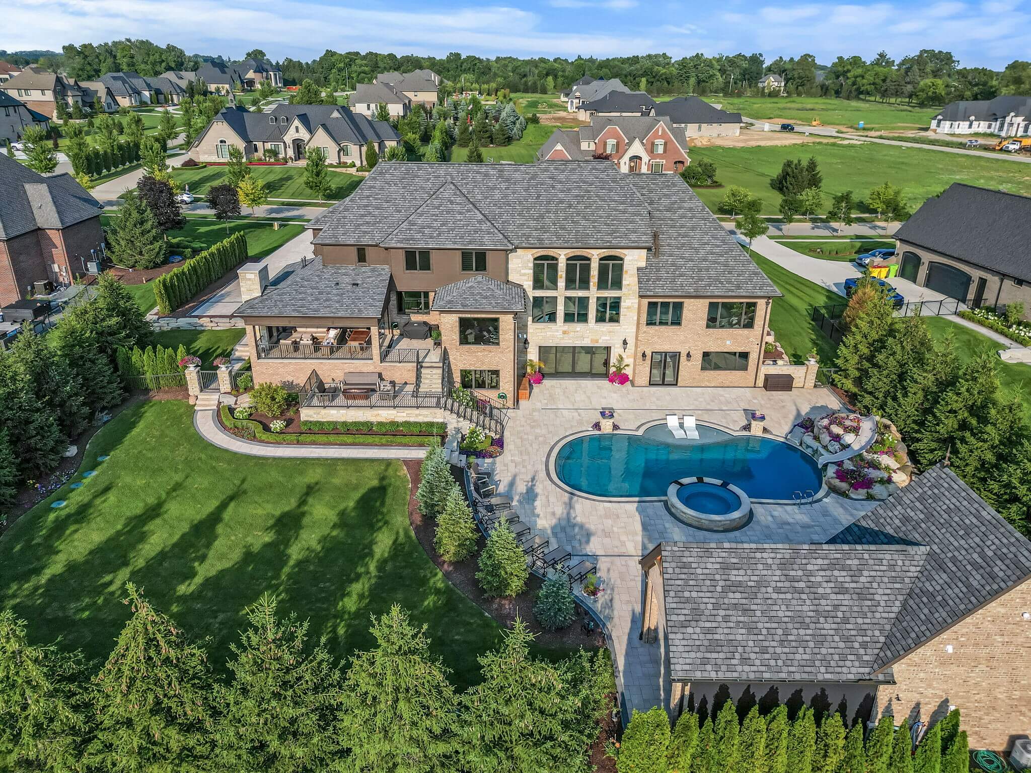 Antonelli is your elite pool builders in Washington, MI! This project features a gunite inground pool and spa complete with cascading waterfalls, and a hidden slide tucked into Michigan fieldstone boulders, made for endless fun. The elegant pool deck pavers frame the pool, harmonizing with the overall home design. Additionally, the pool deck boasts pillars with ambient fire bowls, enhancing the outdoor living space. The brick paver walkways and driveway crafted with Oaks Rialto seamlessly unite the landscape, completing the cohesive aesthetic. Landscape lighting further enhances the exterior, adding a final touch of sophistication to the entire property. Get started with our award-winning craftsmanship and service, REACH OUT!