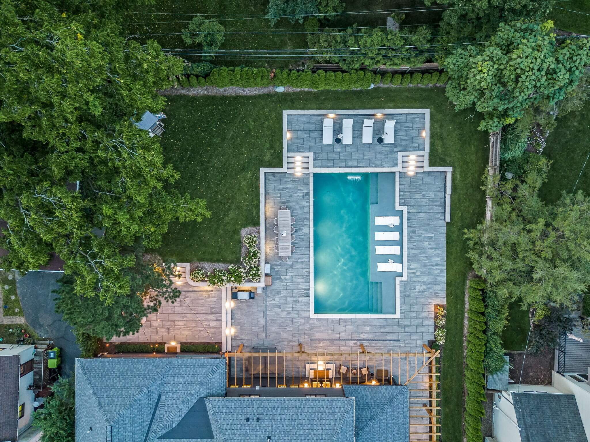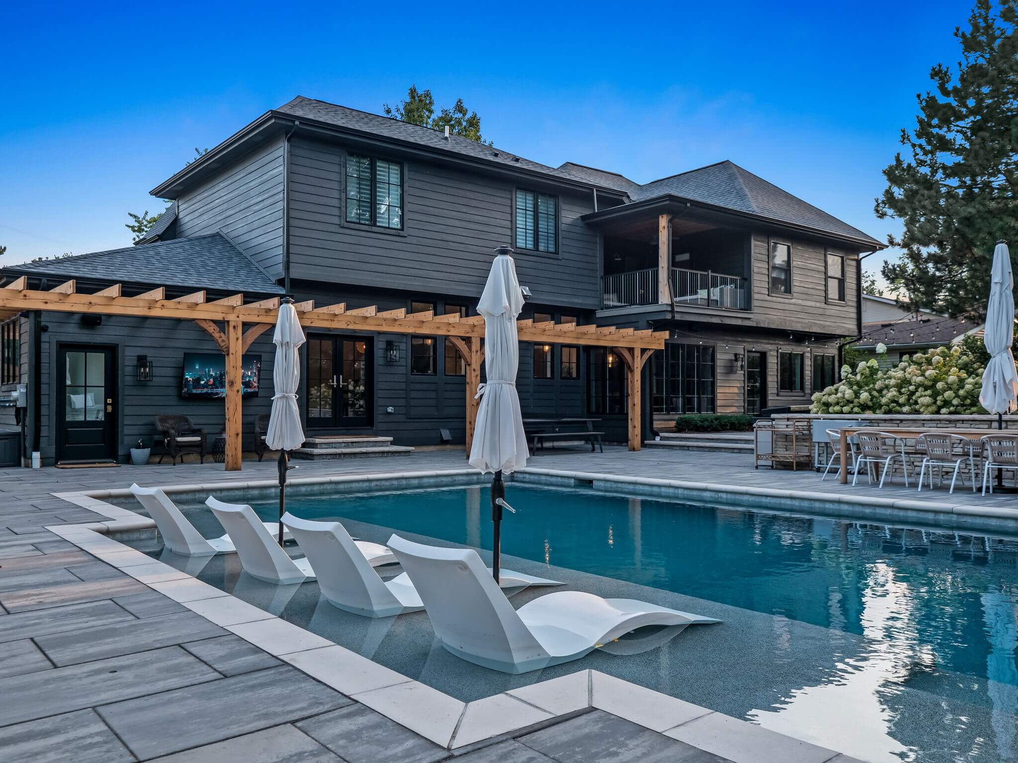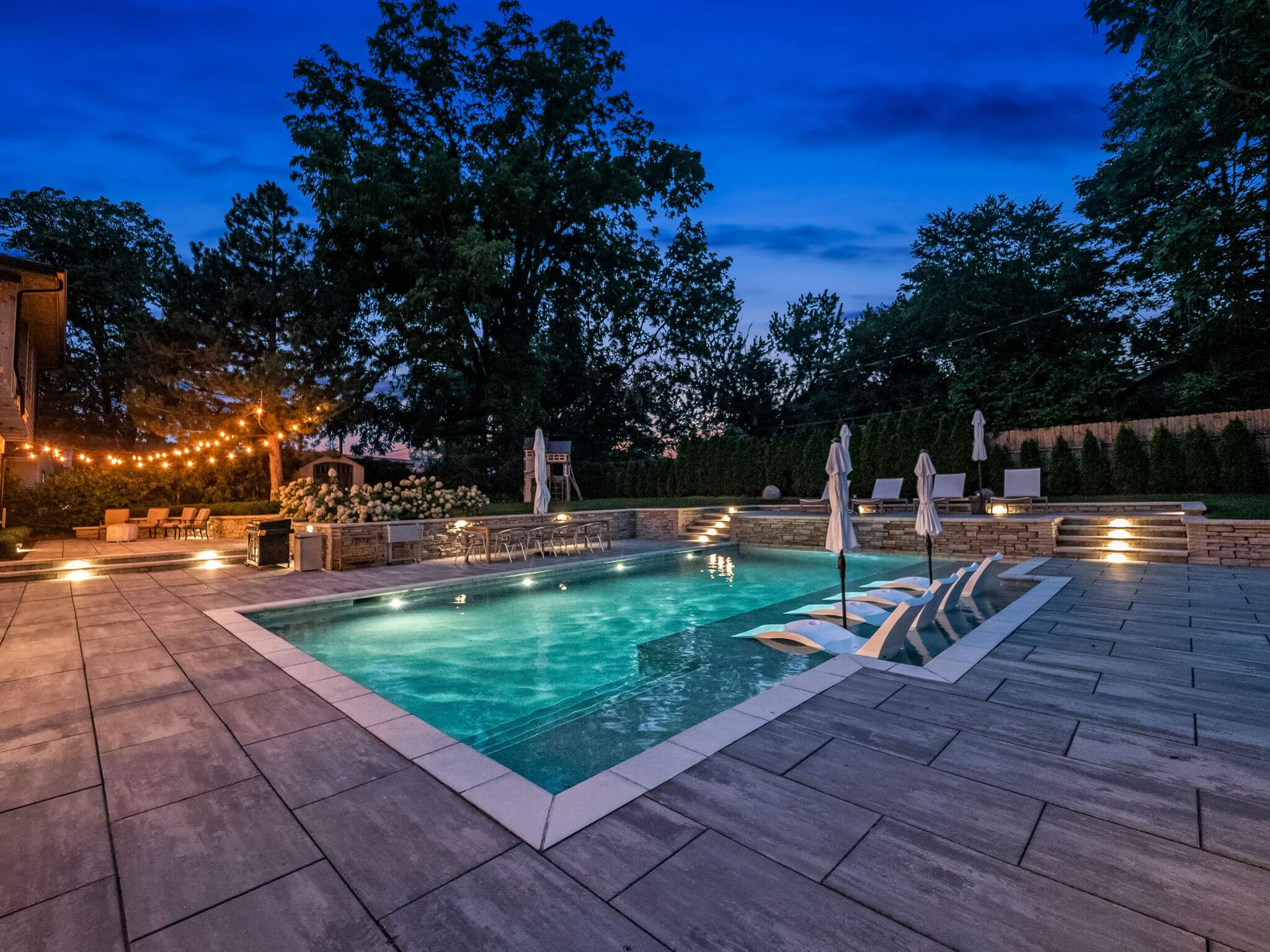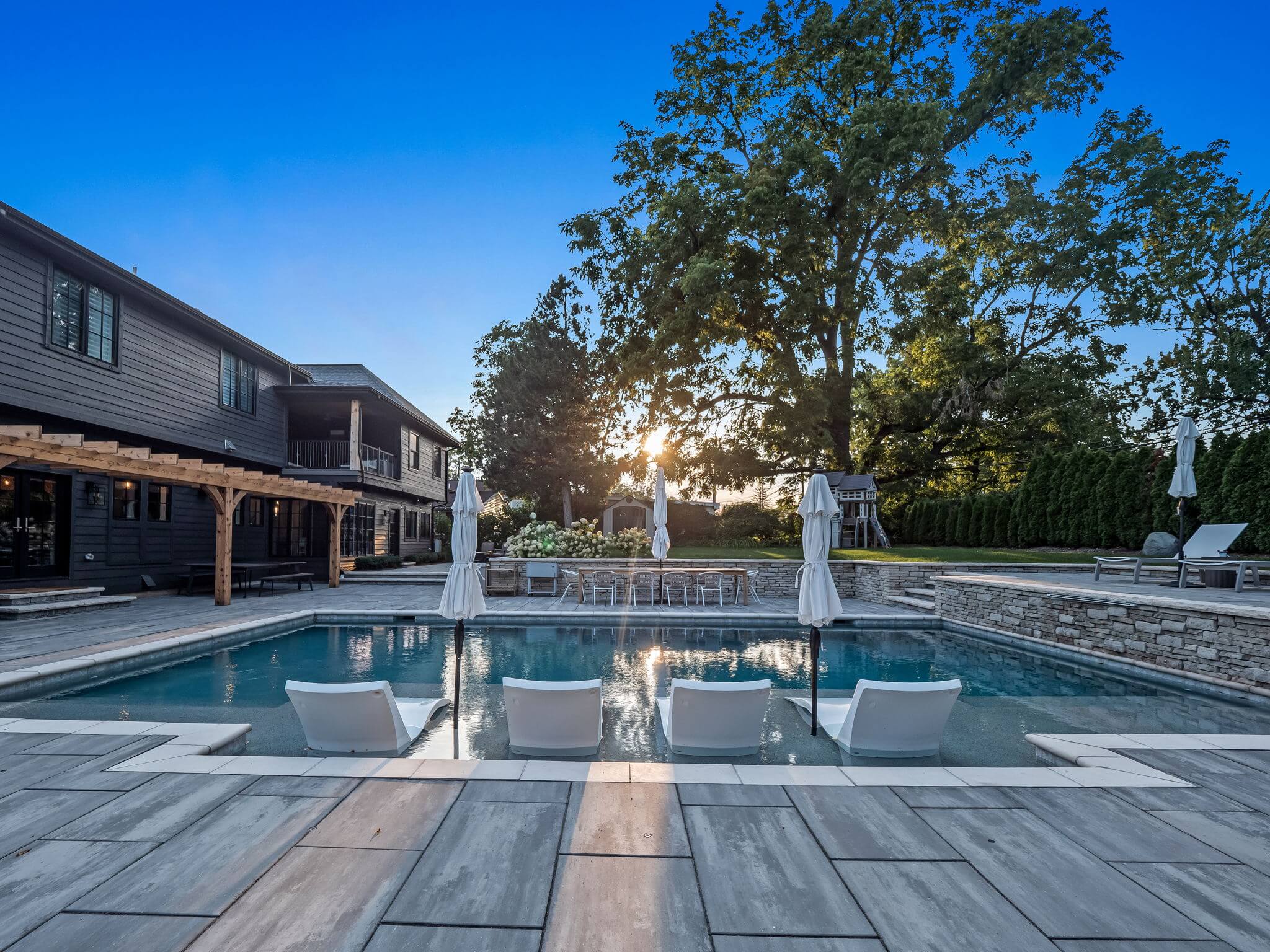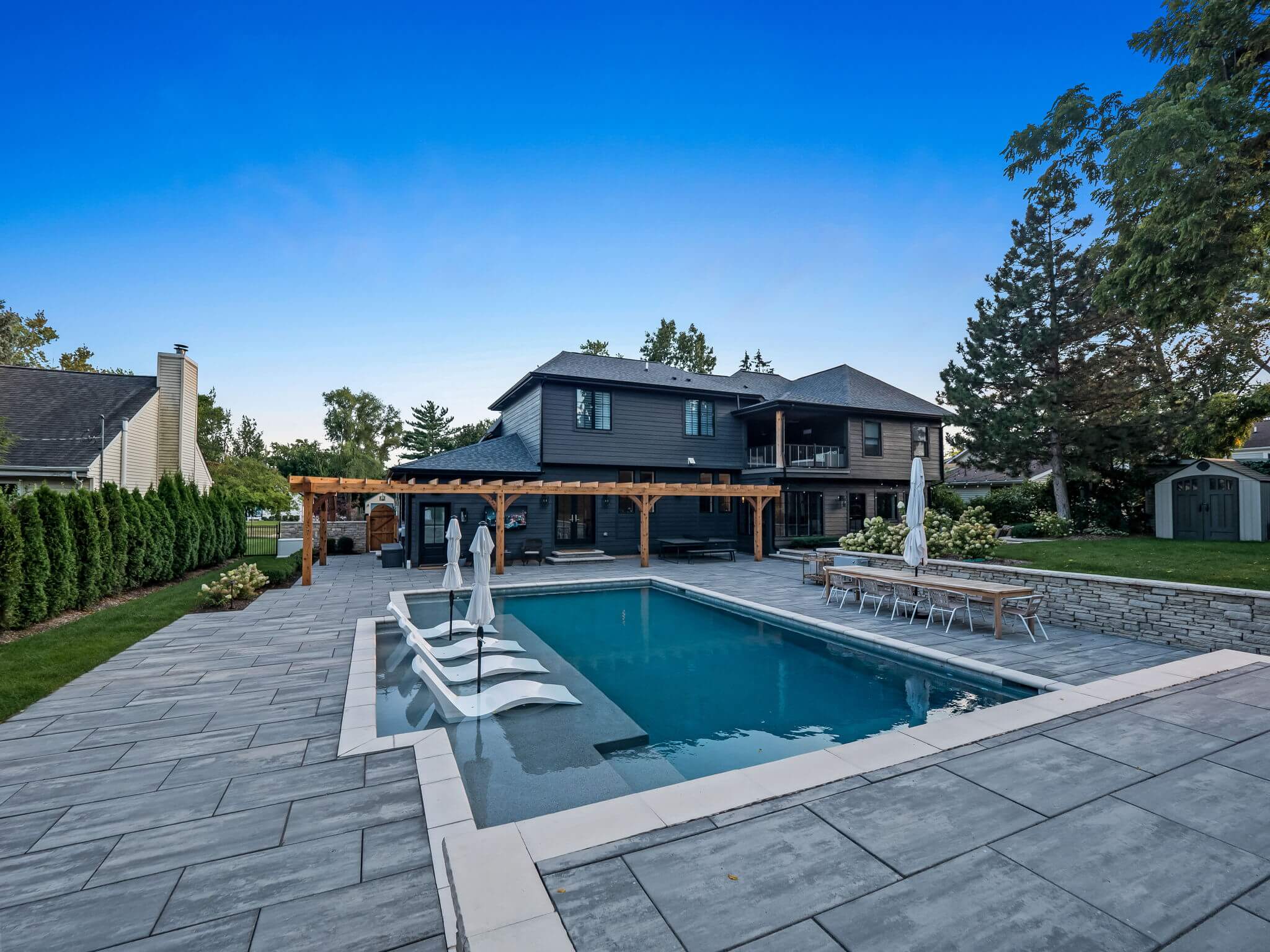 Transforming landscapes into luxurious retreats, Antonelli stands as your premier Rochester hills pool builders! Dive into fine craftsmanship with this breathtaking gunite pool project in Rochester Hills, Michigan. This modern pool design project highlights a stunning inground gunite pool, complemented by a brick paver pool deck using Unilock Beacon Hill XL patio pavers. We also added sensory elements like the cascading waterfall that pours into the gunite pool from a raised retaining wall. An aesthetic and functional custom pergola lines the backyard as the perfect shade structure, complementing the darker features on this home. Ambient LED lighting was installed and enhances the entire home, while lush softscaping completes the build. How GOOD is your pool build in Rochester Hills? CALL US to get started!