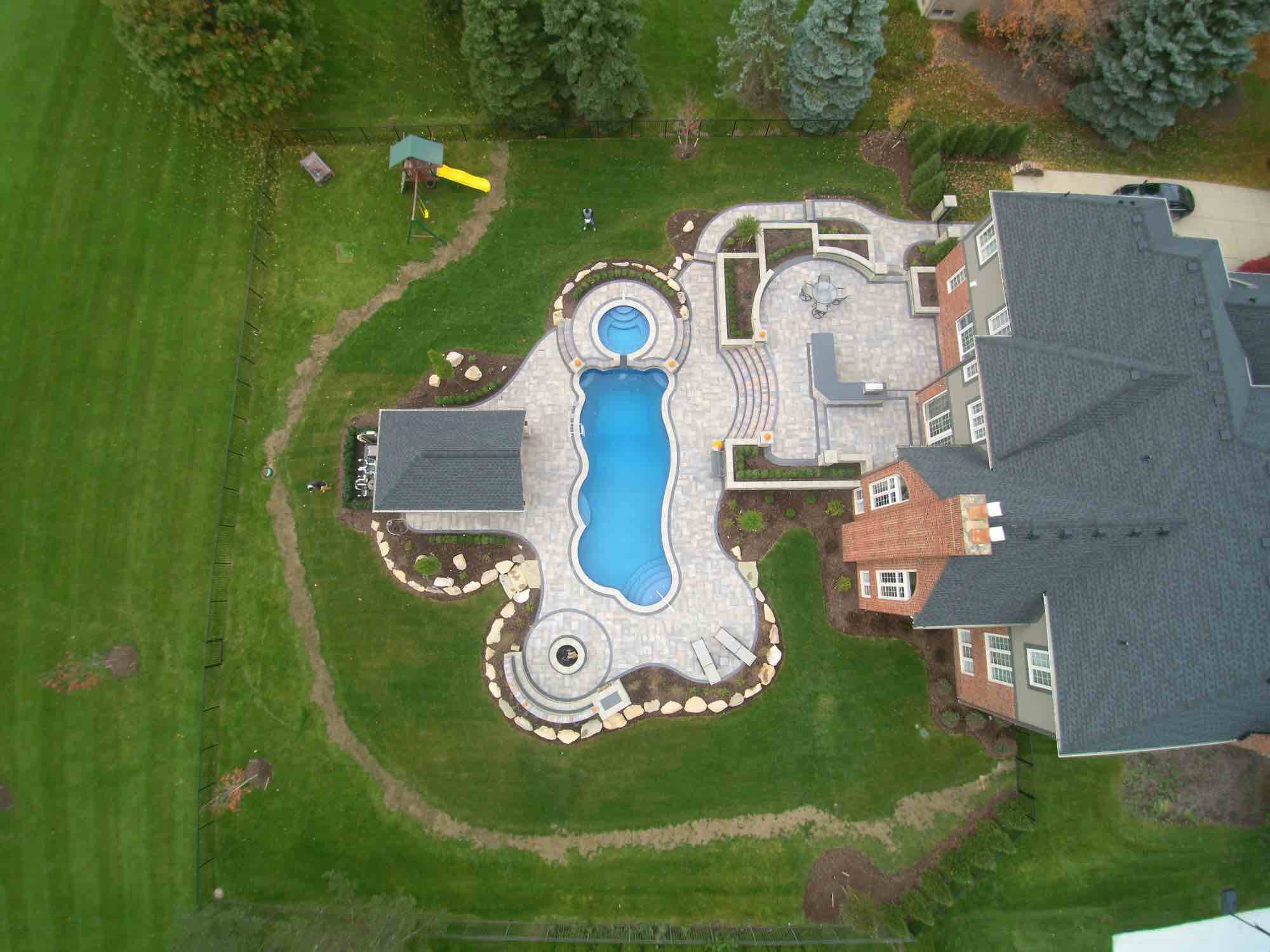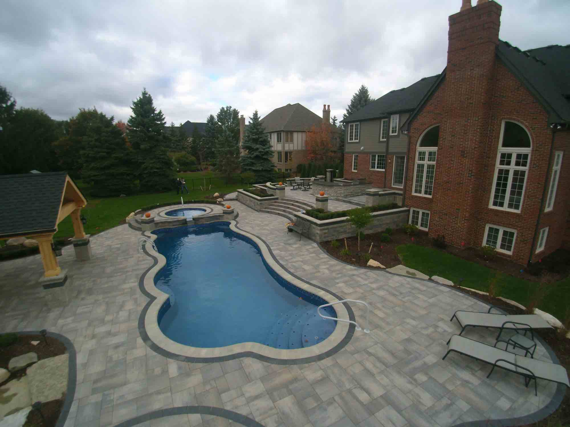 Check out this impressive terrace paver patio & luxury pool built in Oakland Twp, Michigan! The Antonelli team designed an impressive freeform gunite pool with attached gunite spa, surrounded by a paver pool deck including Unilock pavers in Beacon Hill Smooth. The patio design also includes a custom cedar poolside pavilion adding ample shade poolside, and a brick paver fire pit with seating walls for outdoor relaxing and fun. The terraced paver patio adds dimension to the space, allowing for an upper seating area and outdoor grilling station using Unilock pavers in style Rivercrest. Final touches to this grand outdoor living space include Michigan fieldstone boulders lining the softscape of the property, and natural stone steps leading to the remainder of the property. Let’s make summer rock! CONTACT us!