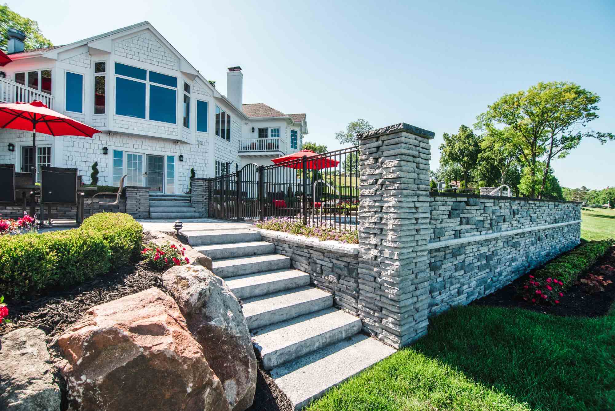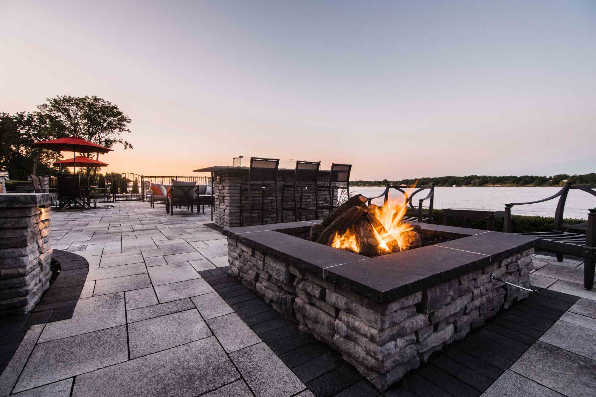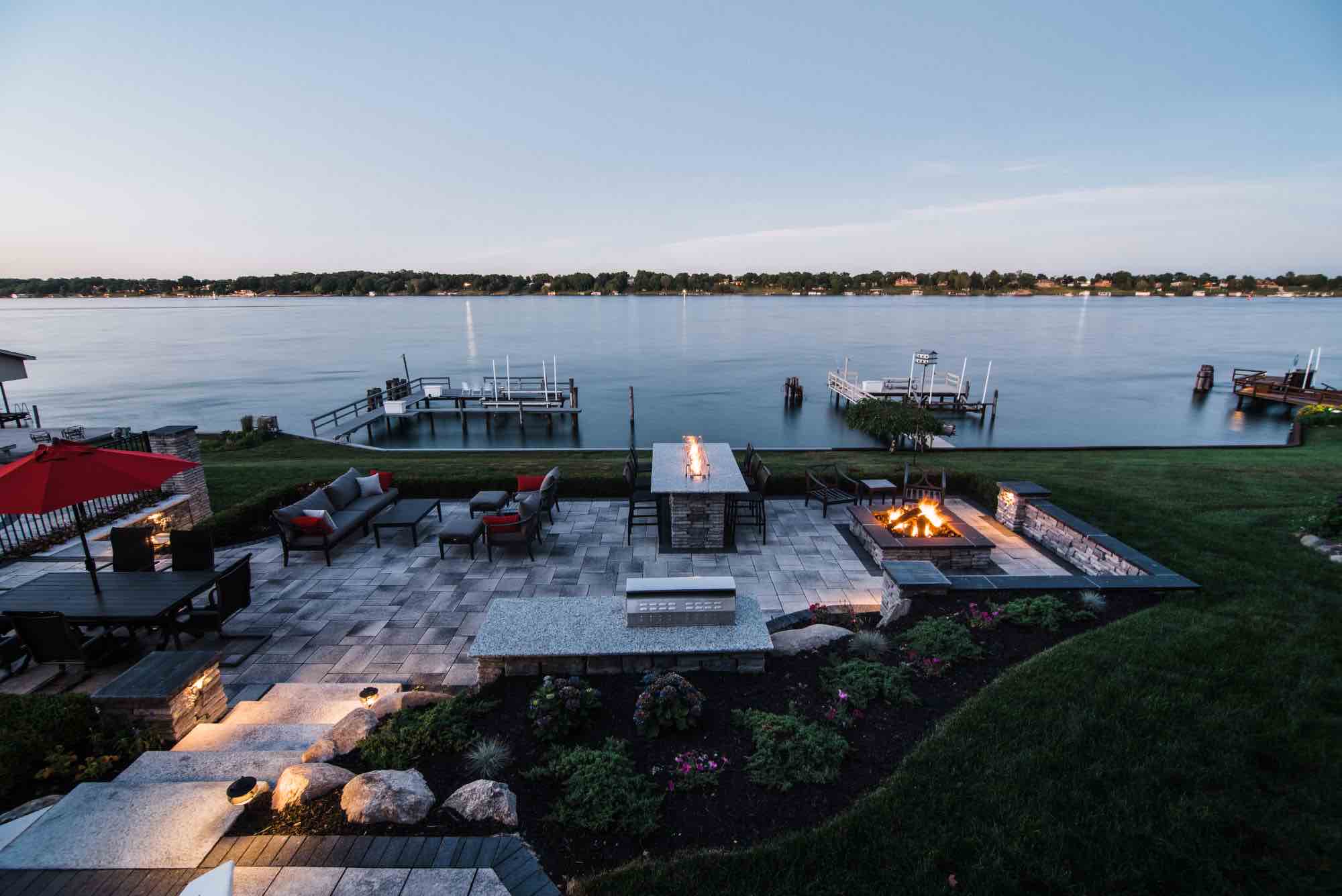 This fiberglass pool & spillover spa in St. Clair Michigan exceeded all expectations, turning this backyard into a paradise right here in SE Michigan! The Antonelli team was committed to designing a luxurious fiberglass pool, complete with a bubbling spillover spa, and fire features. To fulfill this vision, we started by crafting a fire table for unforgettable dining, a secluded fire pit area with retaining walls, and the captivating pool area, strategically placed to ensure unobstructed views of the river. Elevation was a challenge, and we conquered it with a network of integrated paver staircases. The main ledgestone staircase unites the patio and pool areas to the river's edge. This backyard isn't just a space; it's a destination on the river. CONTACT us for your swim spa in Southeast Michigan!!